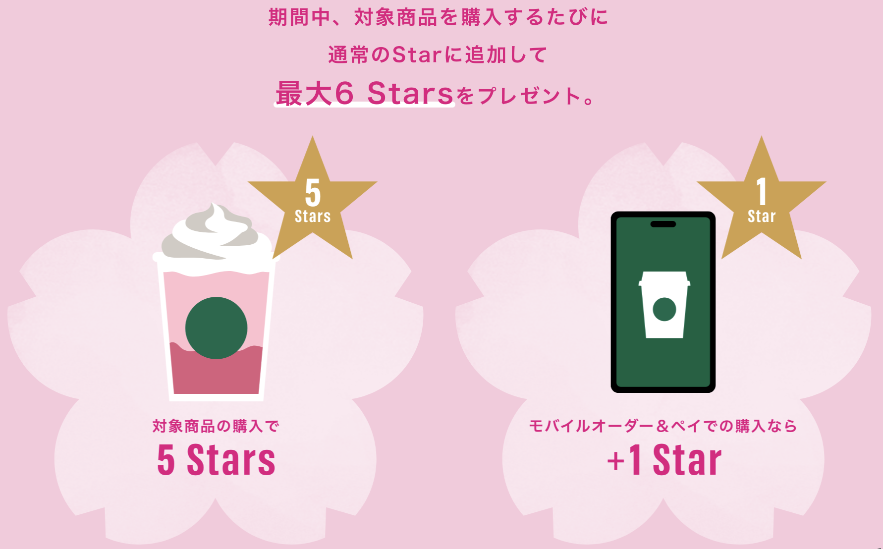 이번에 스타벅스 리워드 사용하는 사람은 대상 음료/푸드 주문 시 보너스 스타를 주는 이벤트도 하니까 엔트리 해두면 이득이다. (이벤트 페이지) 대상 상품 (말이 대상 상품인데 거의 대부분의 음료 메뉴와 시즌 메뉴가 포함됨) 주문 시 5 스타, 모바일 오더로 주문하면 1 스타가 추가 부여 된다고 한다. 부여되는 기간은 3월 말이라 시간 차가 있지만 스타 유지 기간이 1년 정도 되니까 여행이라도 일본에 자주 온다면 모을만한 것 같다.
