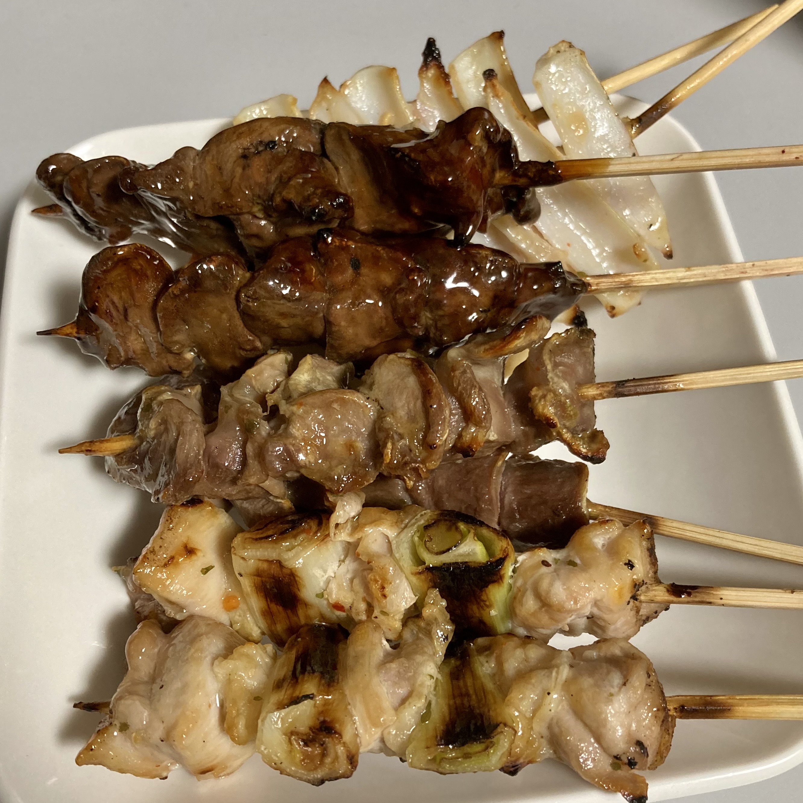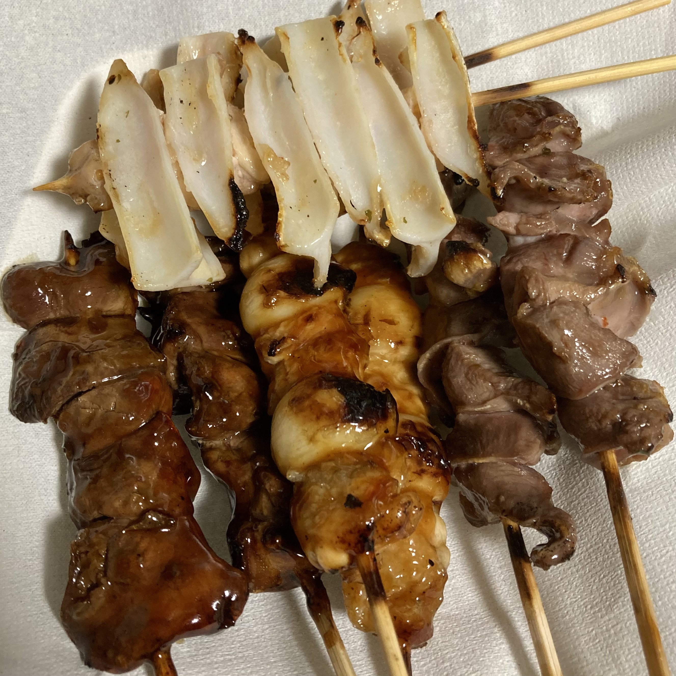 메뉴 중 딱 하나만 추천하자면 테바닌니쿠(手羽にんにく)가 제일 무난하고 맛있는 것 같다. 간(レバー)이나 모래주머니(砂肝)도 너무 좋아하고 맛있지만 운이 좋지 않으면 비린내가 날 때도 있고, 모모네기(ももねぎ)는 너무 흔한 메뉴니까. 테바닌니쿠(手羽にんにく)는 날개살+구운 마늘조합인데, 고기도 부드럽고 마늘은 구운 마늘이라서 마늘냄새가 그렇게 강하지도 않고 물렁해서 맛있다. 삼겹살 먹을 때 마늘 구워 먹는 한국인 취향에 딱인 야키토리라고 생각한다.
