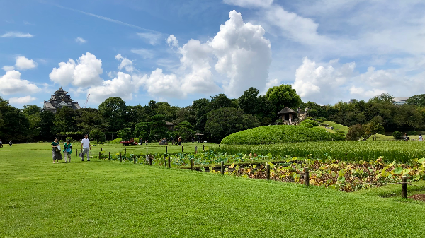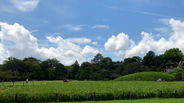 내가 유일하게 3명원 중 유일하게 가본 정원이다. 늦여름(9월 초)에 방문해서 원내가 알록달록하지는 않지만 엄청 푸르렀고, 너무 더워서 체력적으로 힘들었던 기억이 있다. 일정이 있어서 오카야마에 방문한 김에 들리게 되었던 거였기 때문에 시간 관계도 있고 결국 넓은 부지를 속속들이 다 돌아보지는 못했지만 일행들과 자연 속을 거닐면서 웃고 떠든 것만으로도 좋은 추억이 되었다. 미적 감각과는 거리가 멀어서 정원이 어떻게 생겨서 어디가 아름답고 어쩌고 하는 이야기는 할 수 없지만, 일단 부지 크기에 압도되고 그 큰 부지가 자연으로 꽉 차있는, 평소에는 접할 수 없는 광경이 눈앞에 펼쳐지니까 그 자체로 기분이 전환되고 들떴던 기억이 있다. 뇌를 아주 싹 비울 수 있음.