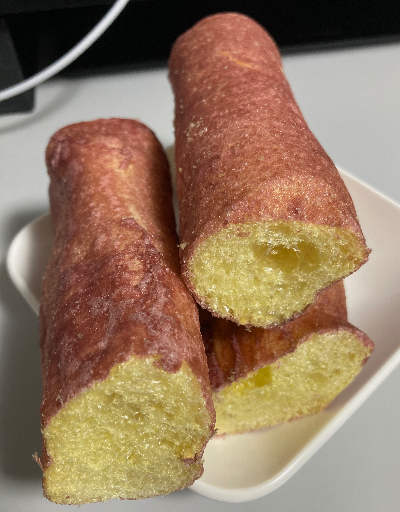 생긴 게 군고구마처럼 생겼는데, 생김새로 인해 높아지는 기대치에 뒤지지 않게 맛도 군고구마 맛이 진하게 났다. 식감은 안에 노란색 부분은 폭신한 게 입에서 그냥 녹고, 겉에 갈색 부분은 안에보다는 단단하지만 설탕의 농도가 높아서 굳어진 느낌의 단단함이어서 입안에서 누르면 파스스하고 부스러지는 그런 식감이다. 겉 부분이 주로 달달함과 고구마 맛을 담당하고 있고, 안에는 맛보다(무맛에 가깝다)는 식감을 담당하고 있다. 부피가 꽤 큰데 보이는 것처럼 안이 뻥뻥 뚫린 과자라서 굉장히 가볍고(한 봉지에 6개가 들어있는데, 100그람이 채 안된다) 입에서 그냥 녹는 게 공기를 먹는 것 같아서 진짜 무한대로 먹을 수 있을 것 같은 아주 위험한 과자다.