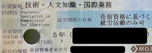 - 현재 재류자격 :「技術・人文知識・国際業務」(흔히 말하는 취로비자) 5년