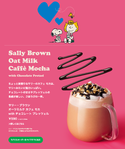 Tall 660엔 - 샐리 브라운 오트밀 카페모카 with 초콜릿 프레첼 (サリー・ブラウン オーツミルク カフェ モカ with チョコレート プレッツェル)