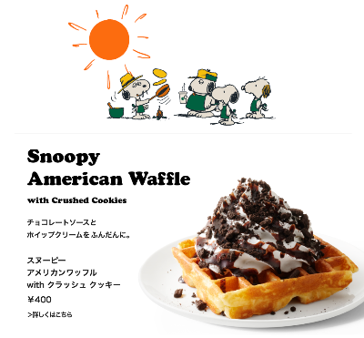 - 스누피 아메리칸 와플 with 크러쉬 쿠키 (スヌーピー アメリカンワッフル with クラッシュ クッキー) 400엔