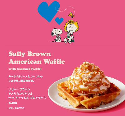 - 샐리 브라운 아메리칸 와플 with 캐러멜 프레첼 (サリー・ブラウン アメリカンワッフル with キャラメル プレッツェル) 400엔