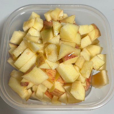 나는 워낙 사과에 도른자이기 때문에 한 개를 다 넣긴 하는데, 솔직히 한 개는 너무 많고 사과 반 쪽정도가 과일과 그릭 요거트의 비율이 블루베리 요거트랑 비슷하게 완성이 된다. 먹기 좋은 사이즈로 대충 썰어서 넣어주면 되는데, 껍질까지 넣을지 말지는 취향껏 선택하면 된다. 나 같은 경우는 사과를 껍질 없이는 먹지 않기도 하고, 껍질이 있는 게 알록달록하니 예뻐서 껍질까지 다 넣는 편이다. - 소금 한 꼬집