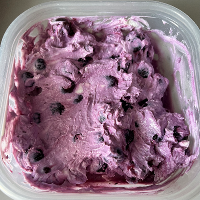 우유 1리터로 요거트를 만들어 유청을 쪽 빼면 엄청나게 꾸덕한 그릭요거트로 이 정도가 나오는데, 과일 그릭요거트의 경우 두고 먹다 보면 시간이 지나면서 과일로부터 물이 나오기 때문에 처음에 들어가는 그릭요거트는 많이 꾸덕해야 끝까지 맛있다. - 냉동 블루베리 150g