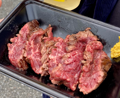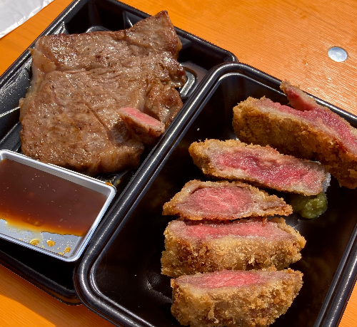 여기서부터는 먹은 거 사진. 스테이크는 전반적으로 다 입에서 살살 녹을 정도로 맛있었고, 규가츠는 환경이 환경인지라 튀김이 눅눅하긴 했지만 그럼에도 불구하고 맛있었다. 요런 곳에서 음식을 맛있게 먹는 팁은 테이블에 앉을 곳 찾지 말고 그냥 사자마자 바로 먹는 거다. 먹을 거 다 사서 한꺼번에 먹으려고 다른 부스 줄 서고 기다리고 자리 찾는 동안 사놓은 음식들은 다 식어서 금방 맛이 없어진다.
