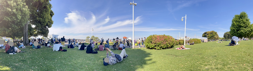 주의 방송은 송출되지만 제한은 풀려서 피크닉을 할 수 있게 되었다. 그늘진 나무 밑에 사람들이 돗자리를 펴고 널브러져 있다. 타이밍이 좋으면 길거리 공연도 볼 수 있다.