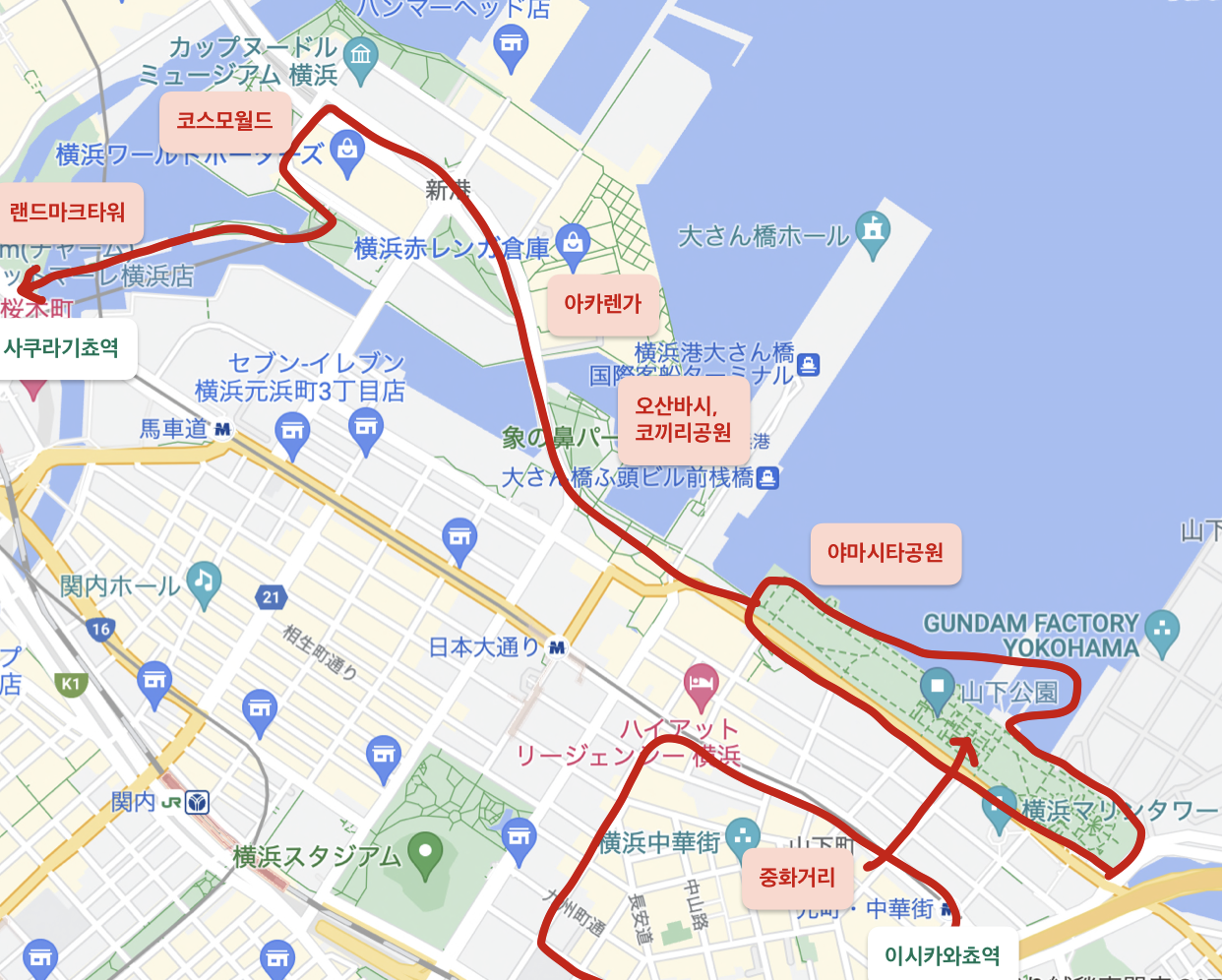 유명한 도쿄 근교 관광지인 요코하마 항구 지역에 대해 기록해 보겠다. 지난 포스팅에서 중화 거리 먹거리 사진을 털었지만, 요코하마는 그 외에도 털 관광지 사진이 하도 많아서 또 쓴다. 여기