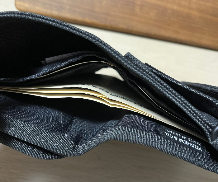 색이 화려하거나 쓸데없는 장식이 달려있는 걸 별로 안 좋아하는데, 그런 내 맘에 쏙 드는 디자인들의 지갑이 많았다. 기능이 충실하고 깔끔하고 투박한, 옷에 비유하자면 카고바지 같은 느낌의 그런 제품들. 동생은 꿰뚫고 있었던 것이다 청정 1 급수마냥 투명한 나의 취향을... 고민하다가 포터 스모키(PORTER SMOKY) 반지갑을 블랙으로 구매했다. 색상은 블랙, 네이비, 브라운이 있었는데 3가지 색상이 다 멋져서 꽤 고민을 하다가 결정을 했다. 가격은 20,900엔으로 괜찮은 가격이었다.