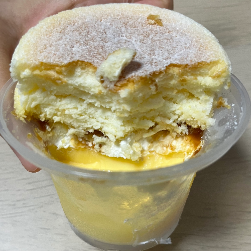 이건 패밀리 마트 디저트다. 조금 단단한 식감의 푸딩이 컵에 들어있고 그 위에 얇게 휘핑크림이 깔리고 그 위에 수플레 케이크가 올라와있다. 수플레 케이크는 치즈맛이 나는 거 같기도 하고(? 막입이라 아닐 수도 있음) 푸딩은 계란 맛이 많이 나는 진한 푸딩이다. 수플레 케이크가 진짜 부드럽고 푸딩이 너무 무르지 않아서 깊게 파서 같이 먹으면 식감도 맛도 잘 어울린다.