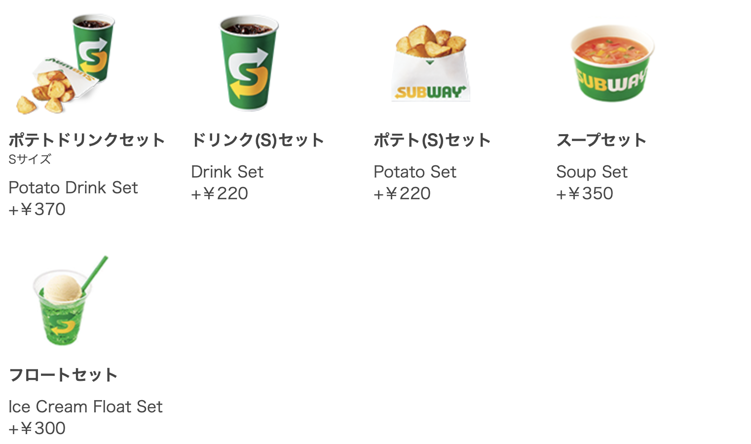 계산할 때 단품으로 할 건지 세트로 할 건지 물어본다. 한국은 세트로 하면 기본적으로 서브웨이 쿠키와 드링크가 추가되었던 걸로 기억하는데, 일본은 어떤 세트로 할지 고를 수 있다. 기본적인 세트는 감자튀김과 드링크이고, 그 외에도 수프세트, 플로트세트 등이 있다. 섭웨의 콘크림 차우더를 좋아해서 주로 수프세트를 먹는다. 일본도 디저트 메뉴가 있긴 한데, 초코브라우니와 치즈타르트가 있다. 먹어보진 않아서 맛있는지는 모르겠다.