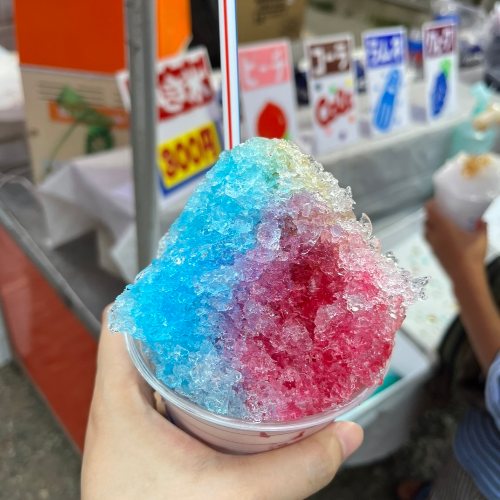 마무리는 얼음 빙수(かき氷). 단순히 간얼음에 향이 첨가된 시럽을 뿌려 먹는 빙수다. 시럽이 과일향만 있는 줄 알았더니 콜라, 라무네, 복숭아 등 생각보다 다양하더라. 시럽은 원하는 맛을 원하는 만큼 뿌릴 수 있었다. 이게 생각해 보면 향이 첨가된 설탕물일 뿐인데 은근히 맛있다. 역시 분위기 덕분인 것 같다.