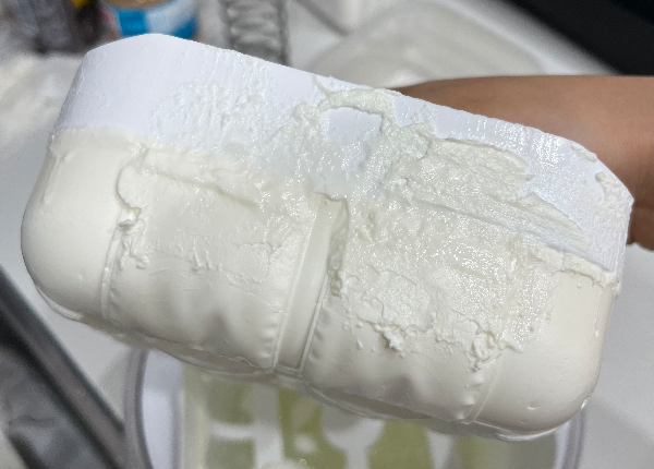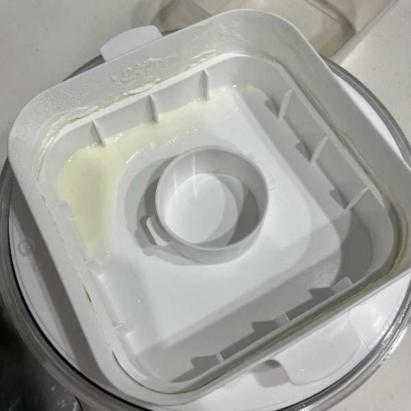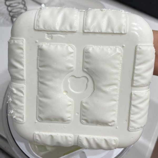 나는 보통 우유 한팩 단위로 그릭요거트를 만드니까 한 번 유청분리할 때 일반적으로 1리터 정도가 맥스인데, 한 번은 제품의 한계인 1.8리터를 꽉꽉 채워서 유청을 분리해 봤다. 1차 유청분리(그냥 방치)를 한 18시간 정도 한 후에 2차 유청분리(스프링으로 압력)를 36시간 정도 했는데, 열어보니 사진처럼 요거트가 살짝 누름판 위로 넘쳐있었다. 이로써 1차 유청 분리 때 시간을 두고 충분히 유청을 빼주지 않으면 대참사가 일어날 것이라는 것을 알 수 있다. 사실을 고하자면 이미 한 번 플레인 요거트 대홍수 참사를 겪은 후에 만든 거여서 1차를 18시간 방치한 거였는데도 저 정도 넘친 거다. 설명서를 처음부터 제대로 읽도록 하자. 설명서에는 1.8리터 기준 1차 분리를 15~20시간 정도 하라고 한다.