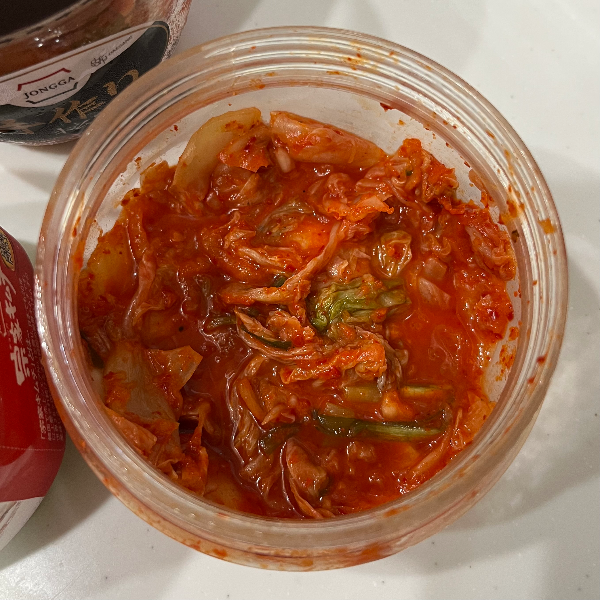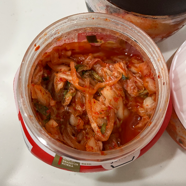 이것도 종가집 김치인데 다른 제품이다. 이건 신김치가 아니고 맛이 덜 든 겉절이 느낌에 가까운 김치였다. 막입이라서 어떤 김치에 무슨 재료가 들어갔는지 정확히는 모르겠지만, 확실히 위에 쓴 특선 수제 김치보다는 톡 쏘는 신맛이 덜하고 배추 맛이 살아 있었다. 이걸 익히면 특선 수제 김치가 되는 건감? 그렇게 단순하지는 않겠지? 특선 수제 김치보다 20g 많은데도 가격은 50엔 정도 저렴했던 걸로 기억하는데, 나는 덜 익은 김치 좋아해서 이것도 너무 맛있었다.