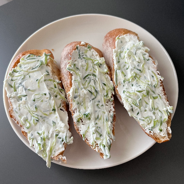 오이 샌드위치를 많이 해 먹던데, 나는 식빵보다는 바게트를 더 좋아하는 편이라 주로 바게트에 발라먹었다. 아무래도 그릭요거트는 냉장을 해서 보관하기 때문에 시원함에 오이의 아삭한 식감이 더해져서 시원함이 배가 되어 여름에 먹기 아주 좋은 음식인 듯하다. 그릭요거트라고하면 나한텐 식사보다는 디저트에 가까운 이미지가 있는데, 이건 짭짤하고 마늘향도 은은하게 나서 제대로 식사류로 느껴진다. 베이컨 파 그릭요거트랑 비슷한 결이다. 생각나면 종종 해먹을 예정이다.