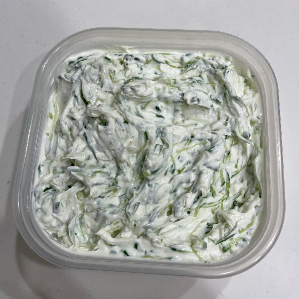 한참 전완근 운동을 해주다 보면 이러한 비주얼의 소스가 완성된다. 이게 바로 차지키 소스라고 한다. 그리스를 안 가봐서 정말 그리스에서 쌈장 같은 위치를 가진 음식인지 확인은 할 수 없지만 일단 한국에서는 그렇다고 알려져 있는 듯하다. 아무렴 맛있으면 된다.