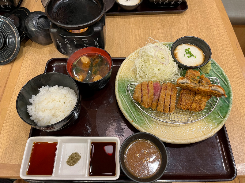 정석메뉴는 채끝등심 부위 규카츠 정식(牛サーロインカツ膳, 세금제외 1790엔), 살치살 부위 규카츠 정식(牛ロースカツ膳, 세금제외 1890엔) 등이 있는데, 나는 이번에 장어규카츠(鰻牛カツ) 메뉴를 시켜보았다. 가격은 세금제외 1990엔. 매년 여름에 나오는 메뉴인 듯한데, 채끝등심 부위 규카츠 (牛サーロインカツ) 반덩이와 장어카츠(鰻カツ) 3조각으로 구성된 메뉴이다. 장어카츠는 처음 먹어봤는데 엄청나게 부드러워서 입에서 살살 녹았다. 솔직히 규카츠보다 맛있었다. 장어가 비싼 데는 이유가 있나 보다. 규카츠는 알고 있는 규카츠 맛이라서 실망하는 일은 없었지만 그렇다고 엄청 기억에 남을 정도로 임팩트가 있지는 않았다. 무난하게 맛있는 규카츠. 오사카에 살 때 덴덴타운 근처에서 먹었던 규카츠가 아직까지는 마음속 랭킹 1위인 거 보면 관서지방이 유명한 음식인 이유가 있는 거다. 여기도 교토발 체인점이긴 하지만..