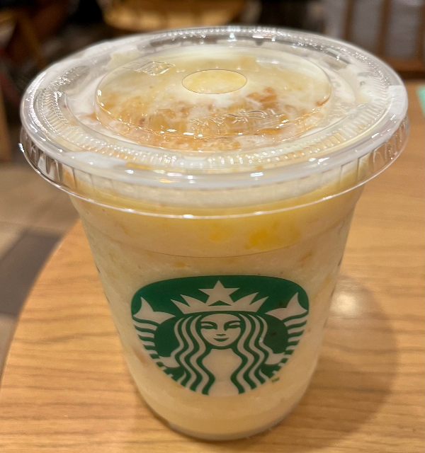 계속되는 스타벅스의 2023 여름 시즌 메뉴, 세토우치 레몬 케이크 프라푸치노 다음은 복숭아 프라푸치노가 출시되었다. GABURI 피치 프라푸치노 (GABURI ピーチ フラペチーノ) Tall 700엔 복숭아 과육