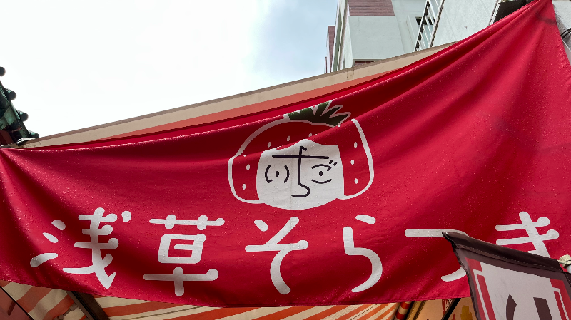 제일 먼저 먹은 건 딸기 당고(이치고당고). 메인 통로에서 한 골목 옆으로 빠진 곳에 위치한 가게이다. 먹을 수 있는 곳은 따로 없고 구매 후 가게 앞에서 대충 서서 먹으면 된다. 아사쿠사 상점가에는 구매한 상품은 구매한 가게 앞에서만 먹는 암묵적인 룰이 있는 듯.