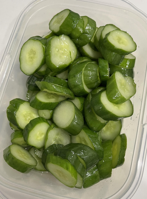 - 오이를 먹기 좋게 자른다