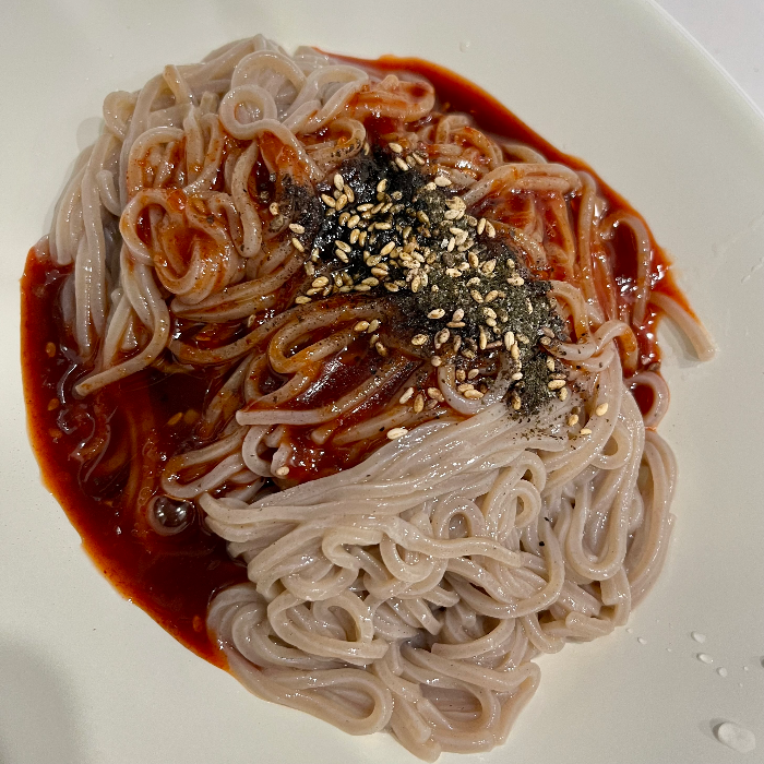 조리방법은 그냥 면을 끓여서 찬물에 헹군 후, 비빔장과 김고명, 참기름을 뿌려먹으면 된다. 면은 두꺼운 편이고 엄청 쫄깃쫄깃했다. 면 자체는 별 맛이 안 났고 비빔장은 새콤달콤한 어디선가 한 번쯤은 먹어본 맛이다. 특별히 맛있다고 느끼지는 못했지만 무난하게 맛있었다. 맛보다는 면의 식감이 맘에 들어서 종종 생각날 것 같다. 다음엔 포장지 이미지처럼 다양한 야채랑 같이 먹어 보려고 하는데, 생각해 보면 비빔장이 모자랄 거 같기도 하다. 있는 비빔장 전부 넣어서 면에만 비벼 먹었는데도 면과 비빔장의 양이 언밸런스하다는 느낌을 못 받았다. 다음에 해보고 추신을 남기겠다.