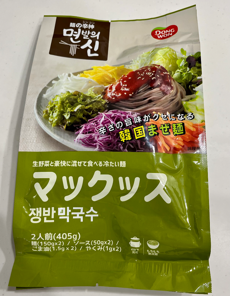 이번엔 전에 쓴 동원 떡볶이의 신 부대찌개 라볶이 옆에 있던 동원 면발의 신 쟁반 막국수를 사 먹어 보았다. 한식의 축복이 끝이 없다. 가격은 라볶이와 똑같은 600엔~700엔 사이. 막국수를 끓이며 한국에 있을 때 내가 막국수를 내 돈 주고 사 먹은 기억이 있던가? 하고 생각해 봤는데, 대학생 때 허구한 날 야식으로 족발+막국수 세트를 엄청 시켜 먹었던 기억이 났다. 그 시절의 배달 음식을 먹는 상황과 야식이라는 시간대 같이 음식의 맛을 극대화시켜 주는 모든 배경 조미료 요소가 첨가된 끝내주는 막국수 맛을 이 인스턴트 막국수에 기대하면 너무 불쌍해질 테니 나의 막국수 경험치를 0으로 설정하고 맛을 감상해 보았다.