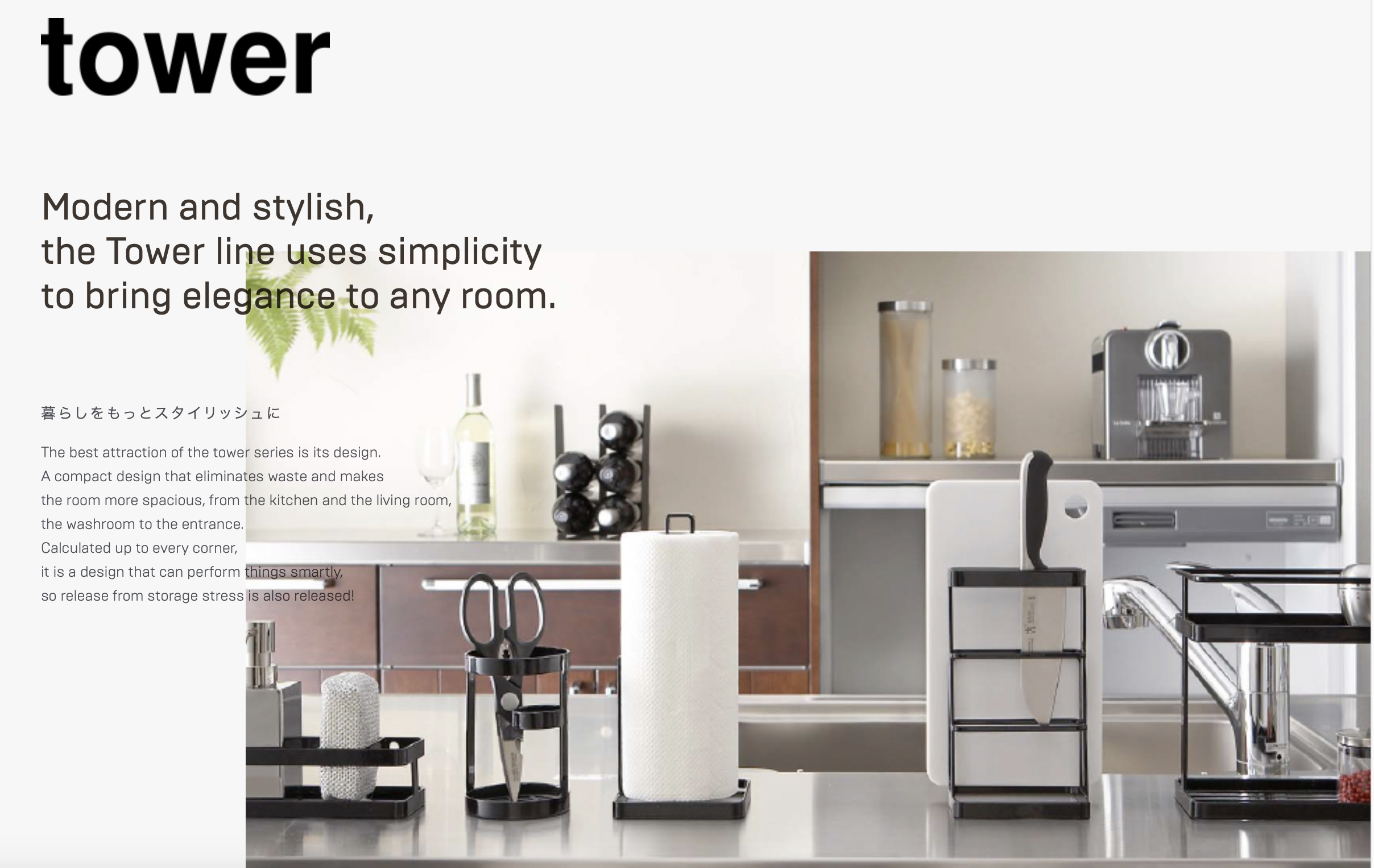 야마자키 실업 : 타워 시리즈 (山崎実業 : tower タワーシリーズ) 제품의 특징을 꼽아보자면 이런 것들이 있다.