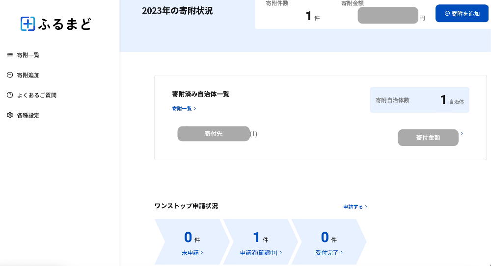 이건 안 할 이유가 없어서 이번 원스톱 특례 신청은 후루마도에서 진행해 보았다. 사실 아직 기부금 수령 영수증이 온 지자체가 한 곳 밖에 없어서 여러 지자체 일괄 신청은 못했고, 일단 한 곳만 먼저 신청했다.