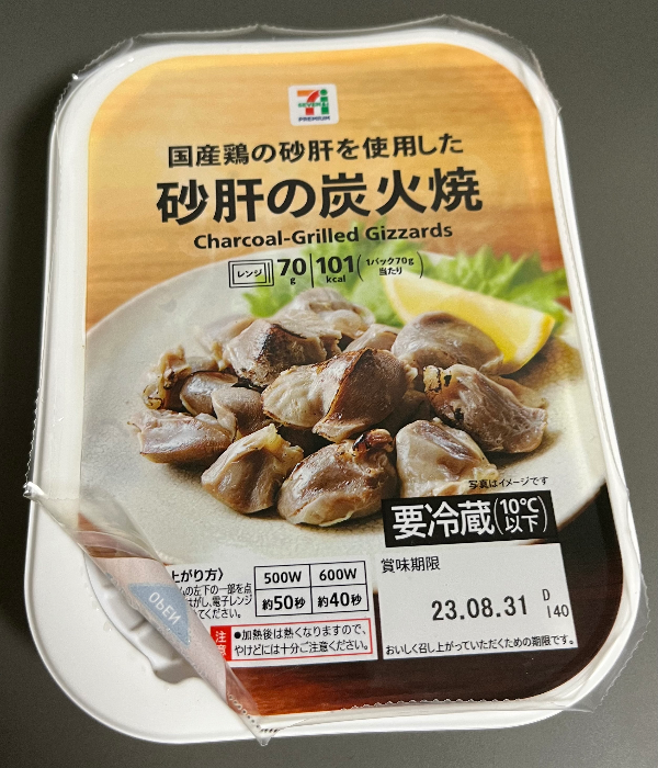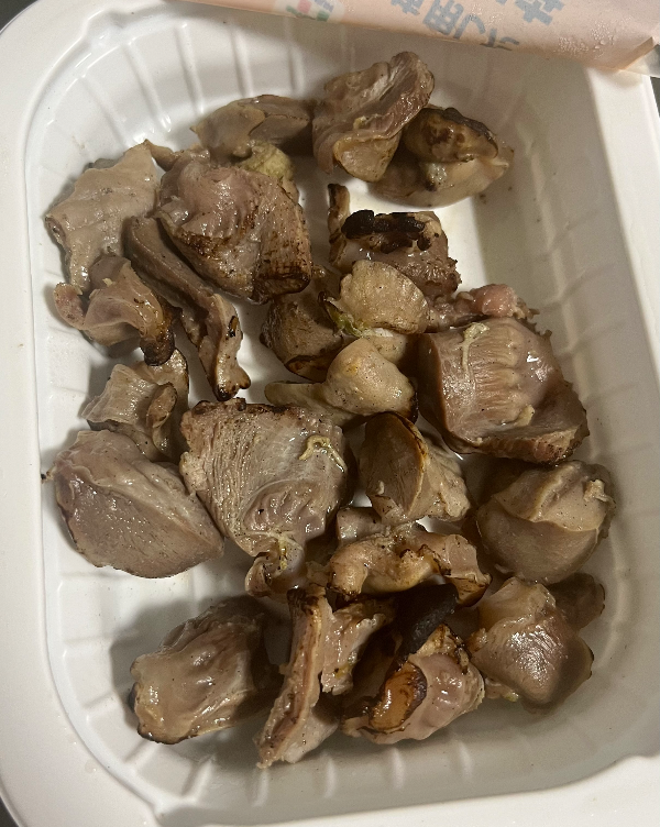 닭똥집은 뭔가 반찬보다는 안주라는 말이 더 잘 어울리긴 하지만 나는 술을 잘 안 먹고 보통 식사를 위해 구매하기 때문에 반찬거리라고 하겠다. 처음 살 때 숯불구이라고 하긴 하는데 숯불맛이 날까 싶었지만 진짜 불맛이 나고 비린맛도 없어서 그 뒤로 잘 사 먹게 되었다. 가격은 289엔.