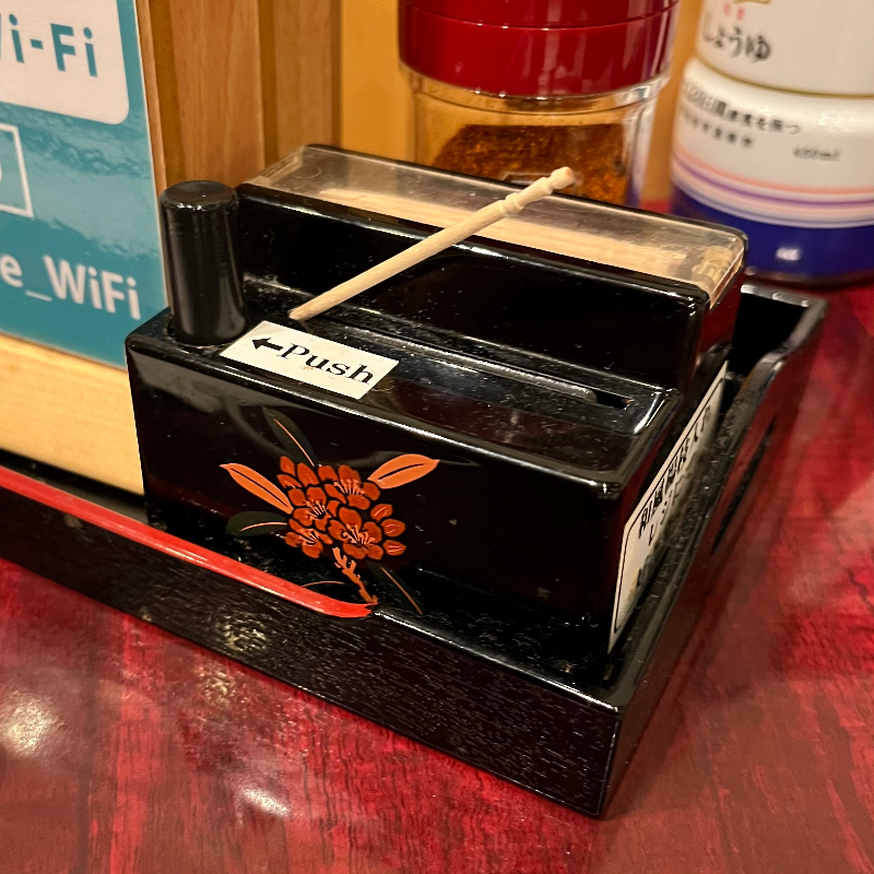 이건 누르면 나오는 이쑤시개 통인데 재밌어서 찍었다. 아침에 비행을 해야 하는 사람들을 위해서 좀 더 선택지를 넓혀줬으면 하는 아쉬움이 있긴 했지만, 아침에 그렇게 가게를 굴리기에는 비용 대비 효과가 안 뽑히나 보지 뭐. 그래도 아침에 연 일식당이 있어서 마지막으로 맥도널드가 아닌 따뜻한 소바를 먹을 수 있는 게 고마웠다.