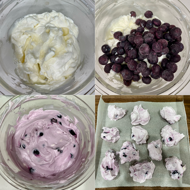 - 냉동블루베리랑 그릭요거트를 무지성으로 섞으면 안 됐다. 그릭요거트에 수분이 많아져서 크림 같지 않고 물을 얼린 것 같은 질감이 됨. 언 그릭요거트에 수분 결정이 다 보이더라. 수분이 많은 과일을 넣을 거면 섞지 말고 그냥 그릭요거트에 콕콕 박기만 하자.