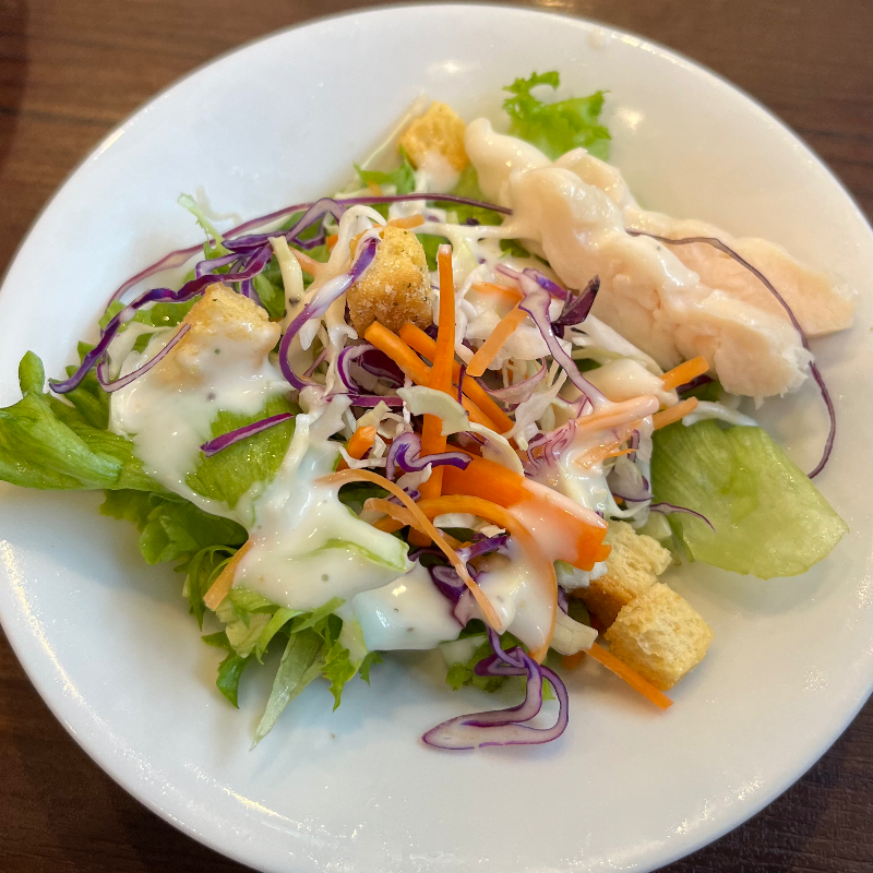 나는 이번에 하몽과 파마산 치즈의 레몬 크림소스 파스타 (ヘモンセラーノとパルメザンチーズのレモンクリームソース) 샐러드 세트를 먹어보았다. 샐러드는 아주 평범하고 평범하고 평범한 샐러드다. 먼저 나온다.