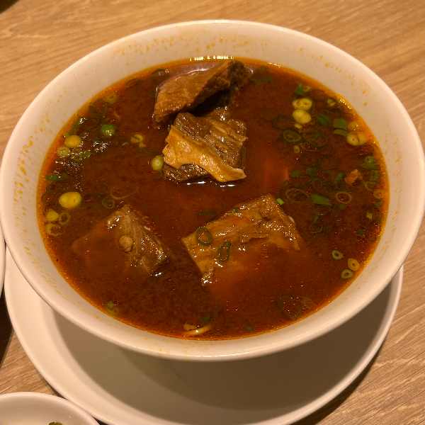 친구와 얘기를 나누며 소룡포를 다 먹을 때쯤 메인 메뉴인 뉴로멘(牛肉麺)이 도착했다. 뉴로멘은 진한 소고기 육수에 얇고 단단한 면, 소고기가 큼지막하게 5조각 들어있었다. 먹음직스러워 보였는데 기대를 너무 한 건지 기대에는 못 미쳤다. 면은 그럭저럭 무난했고 소고기 육수는 정말 맛있었지만 소고기가 생각보다 질겼다.