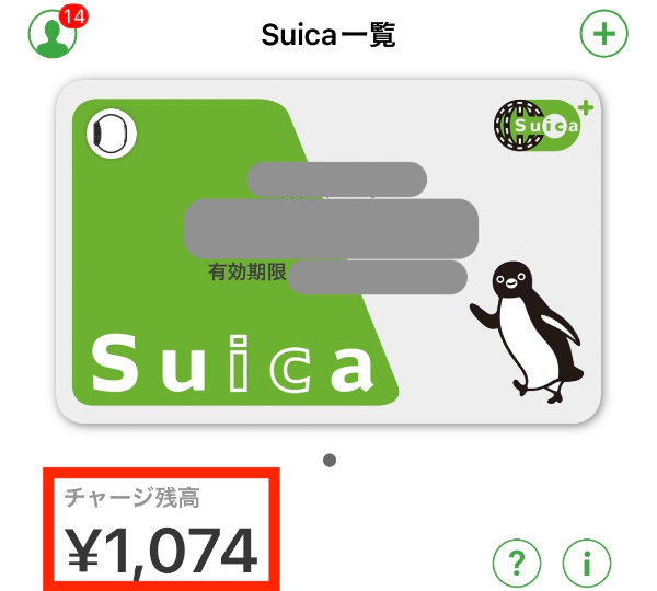 홈화면에서 해당 Suica를 확인해 보면 교통카드 잔고가 포인트 충전분 만큼 증가한 것을 확인할 수 있다.