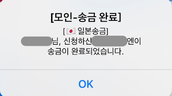그리고 그다음 날, 꼬박 하루 24시간 하고도 3시간 뒤에 송금이 완료되었다는 알람이 왔다. 입력한 일본 계좌를 확인해 보면 돈이 들어와 있는 걸 확인할 수 있다.
