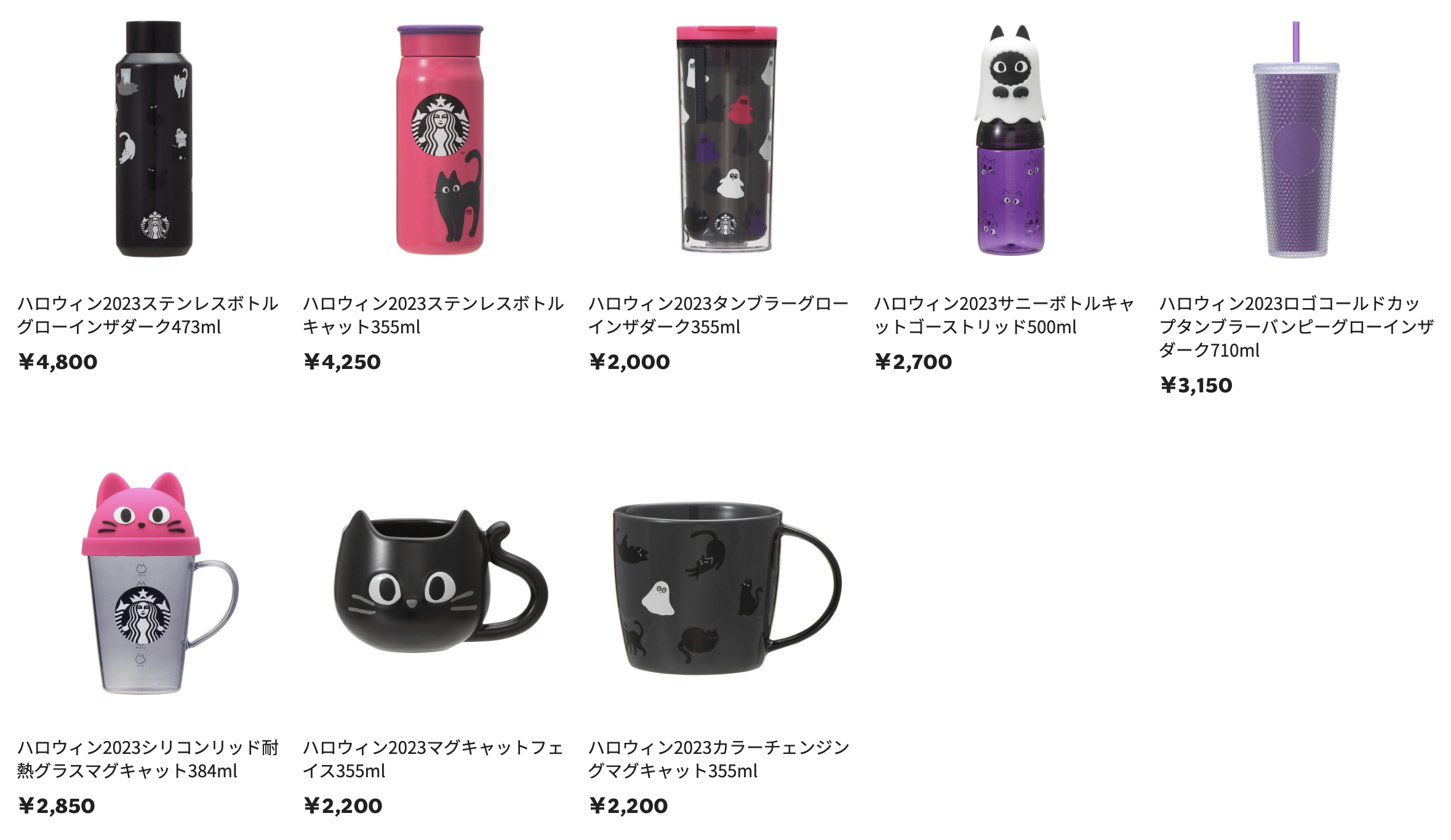 사실 난 굿즈(텀블러나 머그)는 필요가 없으면 어차피 안 사기 때문에 잘 체크하지 않는데, 할로윈 시즌 한정 굿즈들은 높은 확률로 고양이가 메인이 된 귀여운 디자인이 등장하기 때문에 확인을 한다. 이번엔 특히 고양이 유령 써니 보틀과 캣 페이스 머그가 너무 귀엽다. 머그는 큰 틀이 재탕인 것 같기도 한데 아무튼 귀엽다.