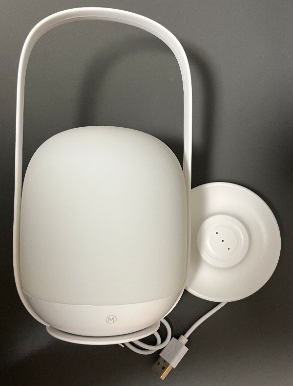 디자인이 마음에 들기도 했지만 이 조명을 선택한 가장 큰 이유는 충전기나 충전선이 본체와 일체형이 아니기 때문이다. 잠자기 한두 시간 전쯤부터 이 조명만 켜놓고 책상에 있다가 침대 옆으로 들고 이동하는 식으로 사용할 생각이었기 때문에 본체에 선 같은 게 치렁치렁 달려 있지 않았으면 했는데, 이 제품이 딱 니즈를 충족해 주었다. 충전기에 케이블을 연결하고 그 충전기 위에 본체를 올려놓기만 하면 충전이 되는 방식이다.