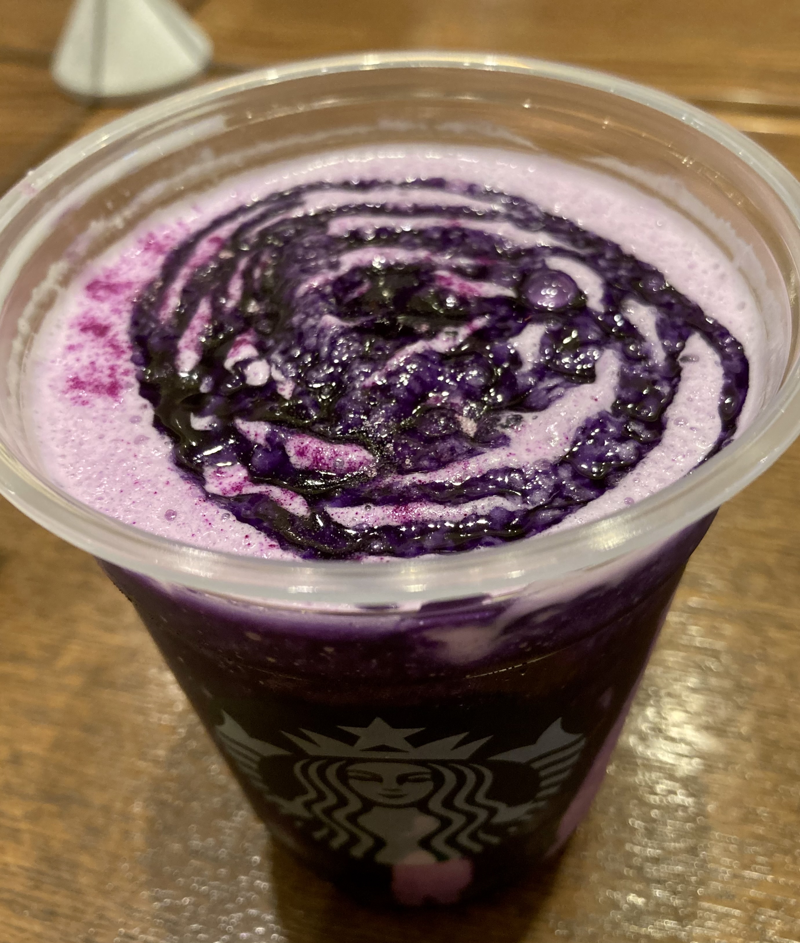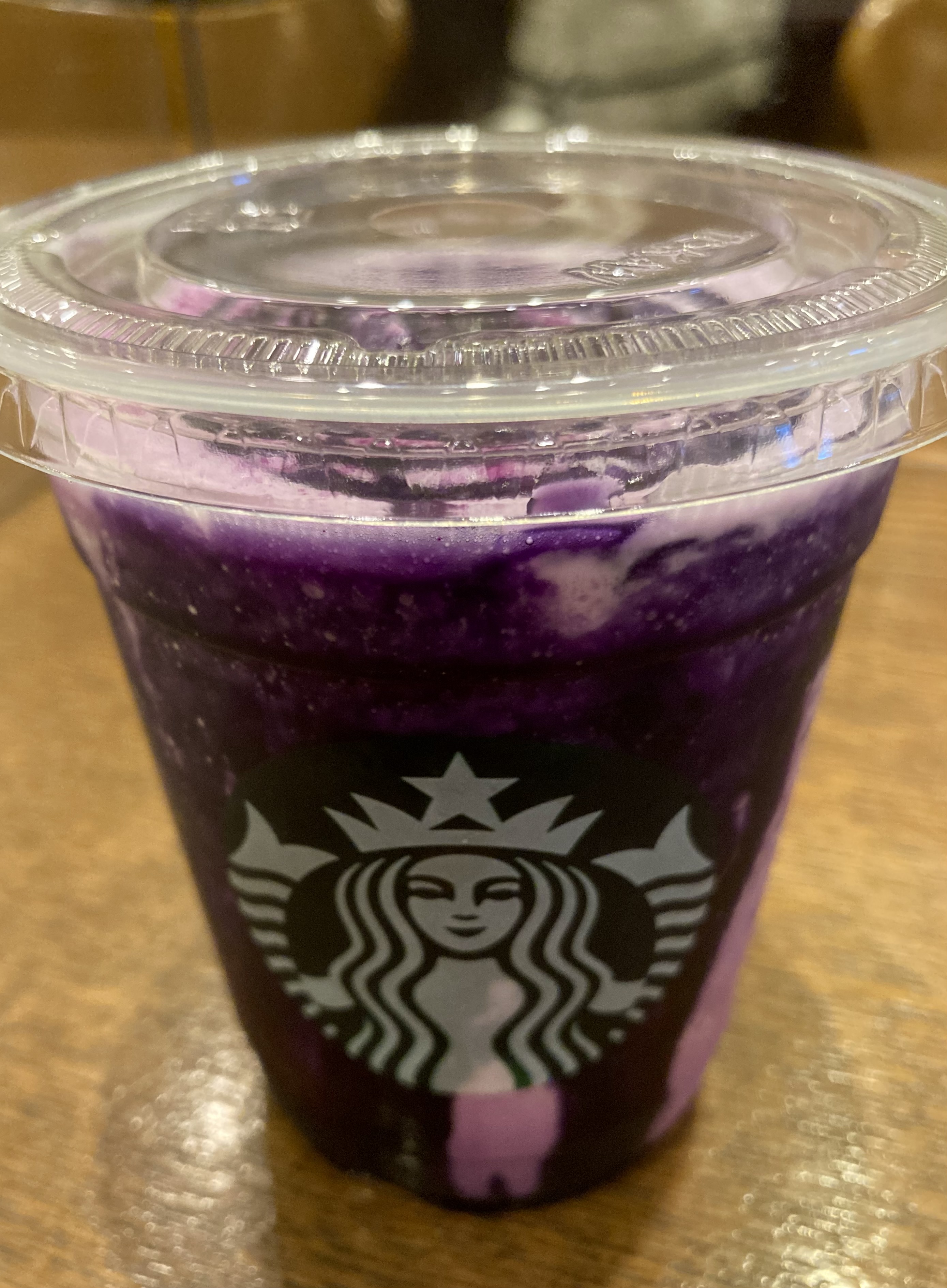 이번엔 자색 고구마랑 바닐라 소스 베이스로 맛은 그냥 무난 무난한데 비주얼이 엄청났다. (휘핑은 싫어맨이라 언제나처럼 휘핑은 뺌)