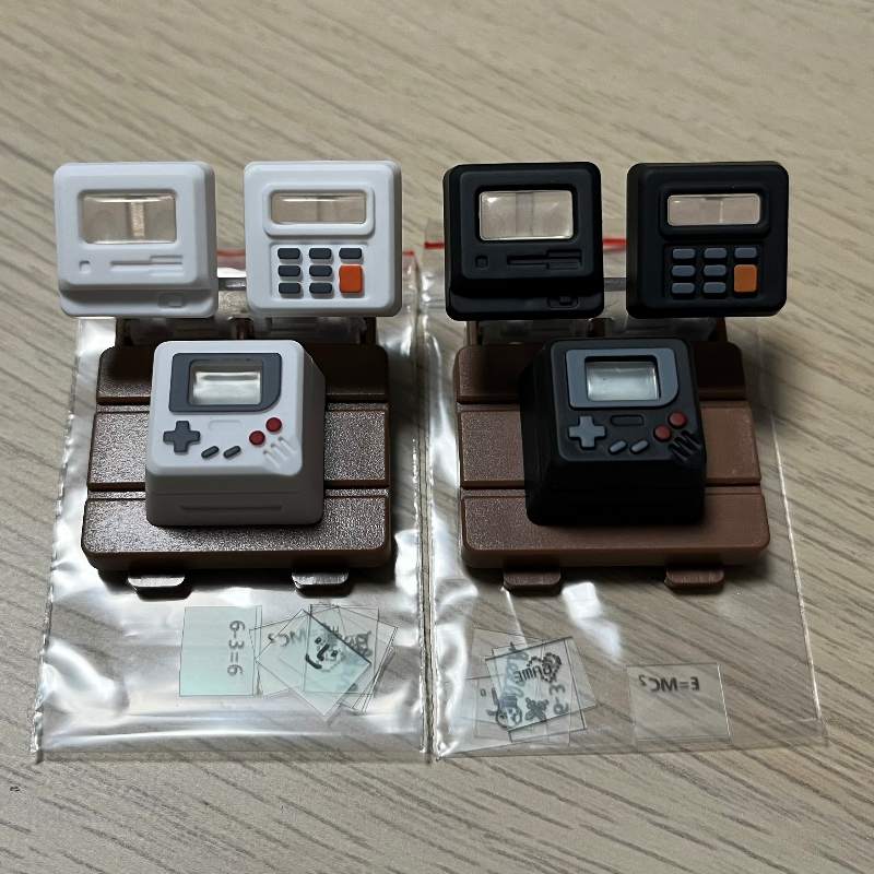예전부터 눈독 들이고 있던 포인트 키캡을 드디어 구매했다. 윗부분의 포맷을 컴퓨터 / 콘솔 / 계산기 셋 중 하나로 갈아 끼울 수 있고, 액정 안에 출력되는 그래픽도 필름 형태로 여러 장이 있어서 원하는 대로 바꿀 수 있는 재밌는 키캡이다. 검은색 흰색 2종류 다 사버림. 고민한 시간에 대한 보상 심리. 이럴 거면 왜 고민을 한 걸까.