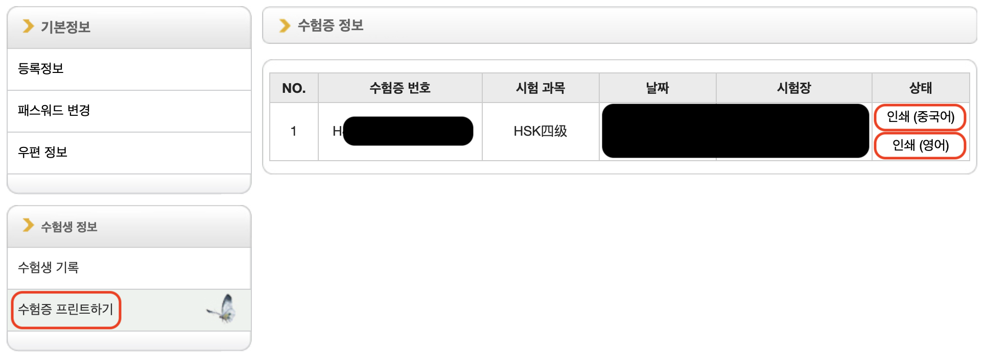 얼레벌레 설명하자면, HSK 시험을 처음 볼 경우 「汉语考试服务网」라는 사이트를 최초 접속하는 절차를 거쳐야 하는데, 공식 사이트에서 시험을 신청하면 신청한 사이트 측에서 위의 중국 사이트 계정을 자동으로 생성해 주는 듯하다. 이때 우리는 계정의 비밀번호를 모르는 상태이기 때문에, 비밀번호를 초기화해주고 새로 설정한 비밀번호를 이용해 해당 계정에 접속하여 신청한 시험 일자의 수험표를 다운로드하여 프린트를 하는 것. 이때 수험표는 중국어, 영어 두 종류가 있으며, 둘 다 시험장에서 유효한 수험표이긴 하지만 중국어 수험표는 한자가 일부 깨질 위험성이 있으므로 영어 수험표를 추천한다고 한다. 이 사이트에서 나의 HSK 시험 기록을 전부 볼 수 있고 시험 결과 분석까지도 해주니 계정을 소중히 다루자.