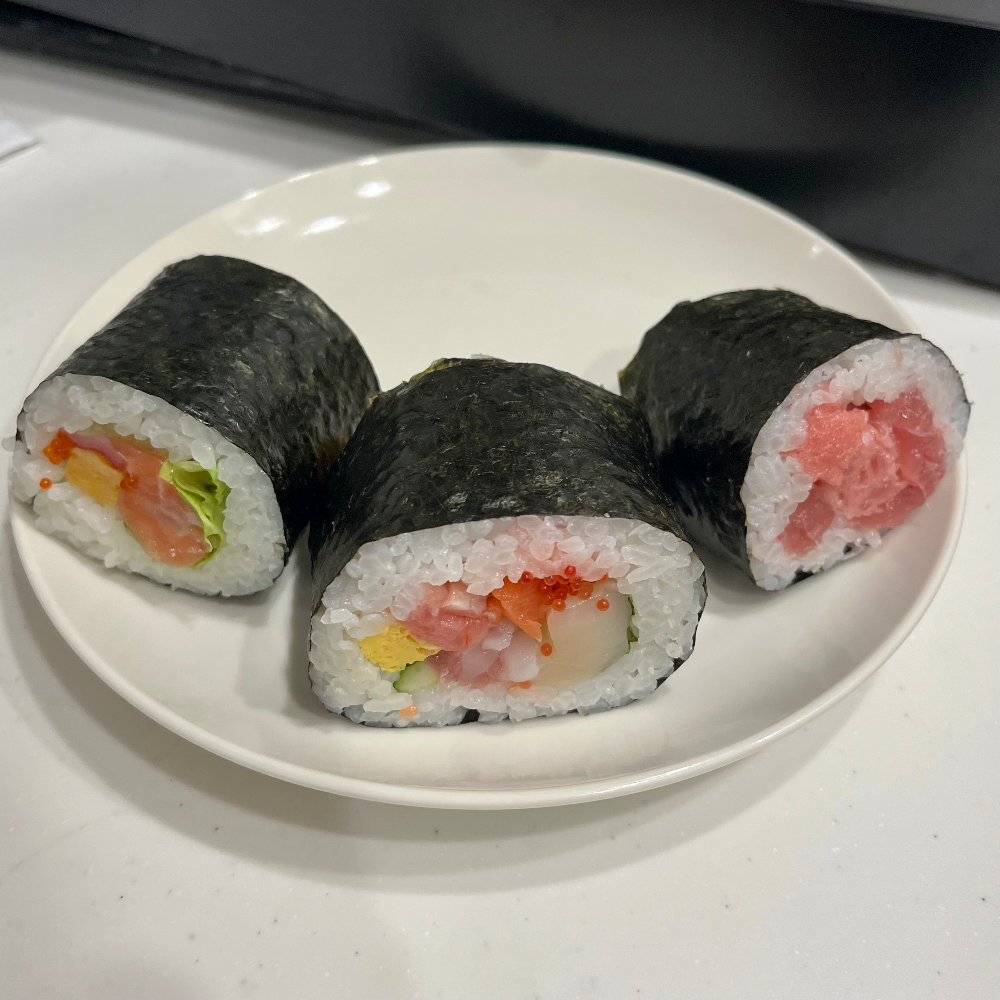한국 명절도 못 챙기는데 이런 일본의 풍습까지 챙길 정도로(...) 일본을 즐기고 있는 편은 아니지만, 어제 마트에 저녁거리 사러 가니까 절분이라고 에호마키를 종류별로 팔고 있길래 기왕이니까 사 먹어 보았다. 진짜 다양한 종류의 에호마키가 있었는데, 에호마키는 기본적으로 (통김밥? 같이) 자르지 않는 걸 에호마키라고 하지만 다양한 종류의 에호마키를 한 번에 먹고 싶다는 소비자들의 수요가 풍습을 이겼는지 그냥 잘라서 여러 종류를 한 세트로 파는 것도 많았다. 이런 건 상품명도 에호마키가 아니고 그냥 후토마키라고 써져 있었음 ㅋㅋ 나도 풍습 같은 거보다는 맛이 더 중요해서 댕강댕강 잘려있는 걸로 구매. 연어랑 오징어+연어, 참치 이렇게 3종류의 후토마키였다. 음 맛있지 뭐.