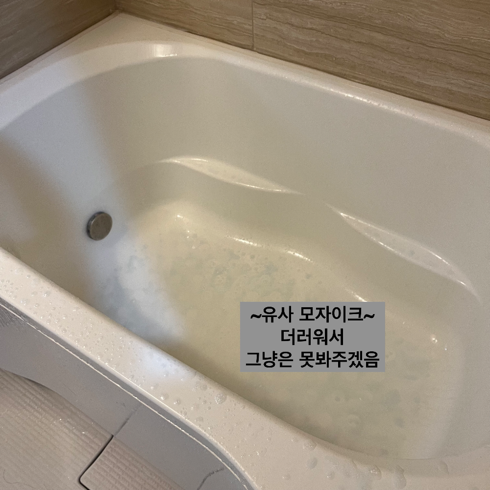 사용한 욕조용 세제는 이 제품인데, 원래는 간편 청소용 제품이다. 목욕 후 욕조에 뿌리고 60초 방치후 샤워기로 싸악 흘려보내 주는 용도로 매일매일 청소에서 대청소거리를 없애주는 방식. 그런데 그냥 이번 포스팅 사용 용도처럼 사용해 줘도 문제없다.