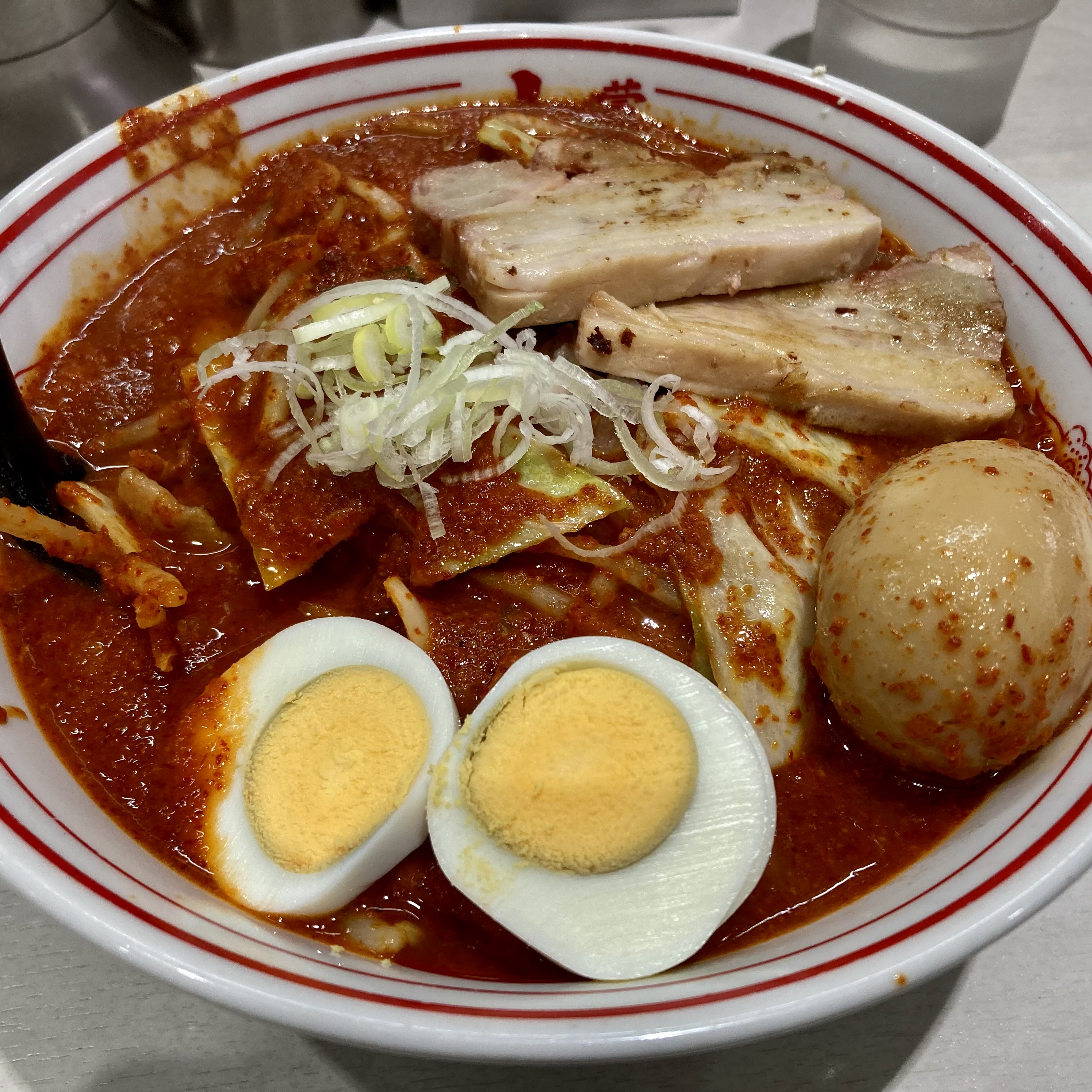 나는 기본 맵기로는 안 먹어 봤고, 맵기 8,9,10배 까지 하나씩 올려가면서 먹어봤는데 솔직히 차이는 못 느끼겠고 엄청 매워서 만족했다. 맛있으면서 매운 것과 그냥 고통스럽게 매운 것의 기준을 잘 모르겠지만 개인적으로는 맛있기도 했음. 이 정도 맵기로 주문하면 국물이 아니고 그냥 꾸덕한 소스 덩어리에 면을 비벼먹는 수준이 된다. 익숙한 라멘의 비주얼은 아님ㅋㅋㅋ 맵기 10배로 해도 못 먹을 정도는 아니까 매운 거 잘 드시는 분들은 좋아하실 듯하다. 물론 뒷감당은 본인이...