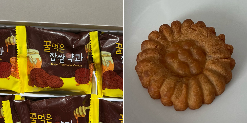 이건 좀 더 한국에 다녀왔다는 걸 팍팍 티 낼 수 있는 한국적인 기념품이지만 호불호가 갈릴 수 있는 녀석이기 때문에 무난한 오미야게와 세트로 구매하는 걸 추천한다. 내가 보는 앞에서 먹은 사람이 없어서 일본인들 반응은 잘 모르겠다. 맛은 정말 평범하고 무난한 약과이다. 찹쌀은 잘 모르겠고, 꿀을 먹긴 먹었는데 찍먹 한 것 같고, 엄청 기름지지도 않은 그냥 무난한 시판 약과. 기념품이기 때문에 외국인들에게 먹힐만한 적정선을 조절하다가 너무 평범해진 느낌이 없지 않아 있다. 하나의 볼륨이 꽤 큰 건 만족스럽다.