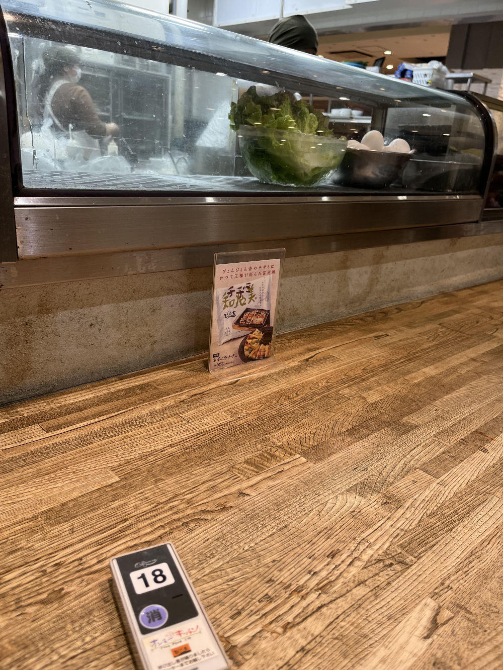 푸드코트라서 테이블이 많지만 이렇게 가게 앞에도 앉을 수 있는 카운터석이 마련되어 있었다. 카운터석의 위생상태는 그렇게 좋지 않고 가방을 놓을 곳이 마땅치 않아서 그냥 다른 테이블에서 먹고 싶었지만 식사시간이어서 여기 말고는 자리가 없었다.