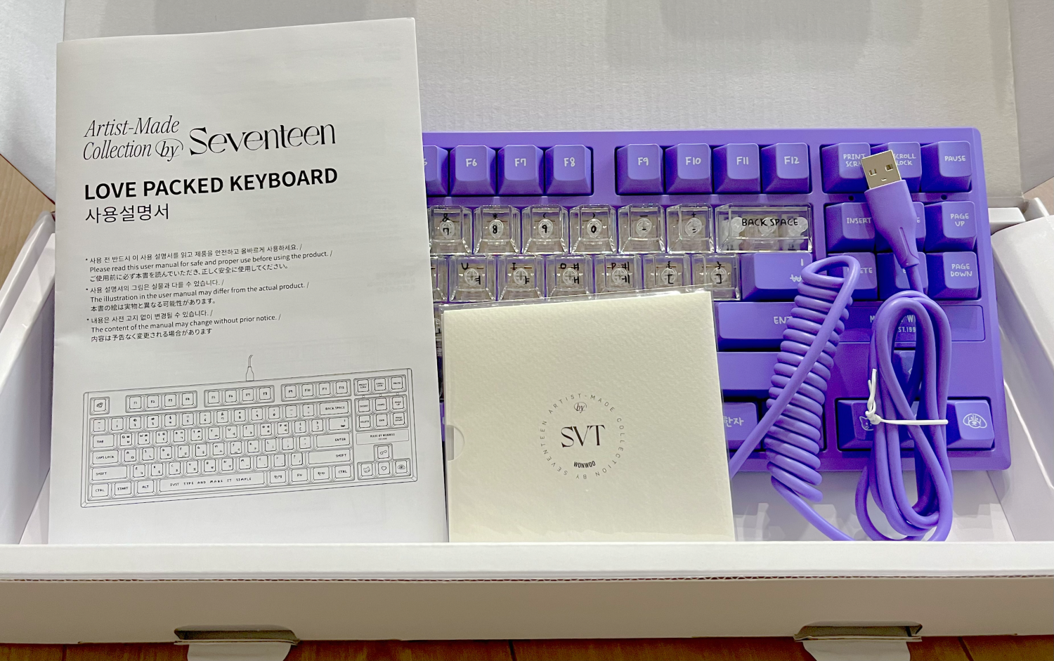 돈이 오지게 나가는 키보드 취미를 억누르고 있던 한 배드클루 집착맨에게 갑자기 들려온 세븐틴의 키보드 굿즈 출시 소식... 멤버들이 직접 디자인한 물건들을 파는 아티스트 메이드 컬렉션이라는 프로젝트에서 멤버 원우분(호칭을 어떻게 해야 할지 모르겠음,,,)이 키보드를 굿즈로 제작한 것이다. 기계식 키보드라고는 하지만 경쟁력 있는 퀄리티의 키보드를 본격적으로 팔자는 게 아니고 어디까지나 아이돌 굿즈였기 때문에 자세한 키보드 스펙에 대해서는 알려진 게 없었다. 그래도 뭐 맘에 안 들면 내가 손보면 그만이니까.