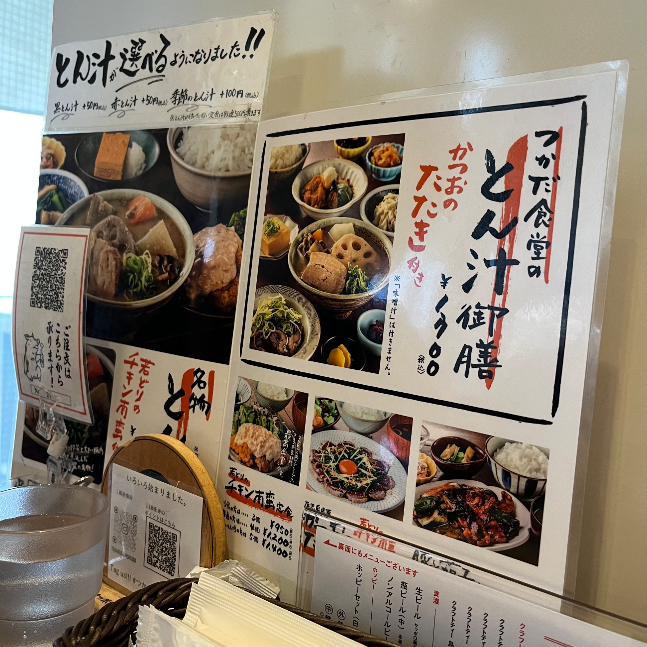 웬만한 생각할 수 있는 가정식 반찬을 다 있는 듯했고, 메뉴 하나하나가 다 그냥 때우기식 반찬이 아니라 제대로 음식 같았다. 돈지루가 유명한 것 같아서 돈지루 정식을 시킬까, 돈지루 고젠을 시킬까 고민하다가 메뉴를 다양하게 먹어보고 싶어서 음식 종류가 좀 더 많은 고젠을 주문했다. 큐알코드로 주문하는 방식이었다.