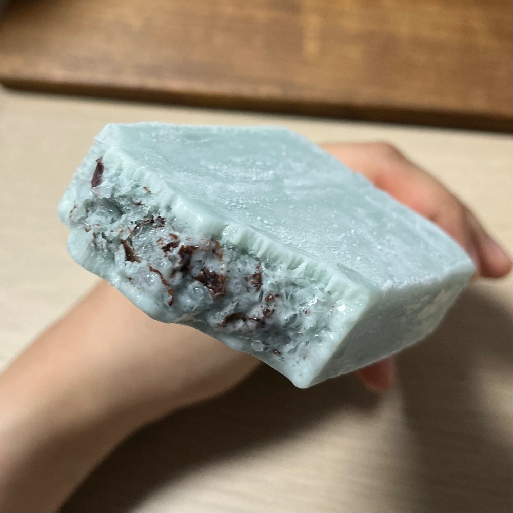 내가 먹어본 민트초코 아이스크림 중에 가장 특이한 민트 초코 아이스크림이었다. 민초는 대체로 크리미 한 느낌인데 아이스크림이라기보다는 아이스바에 가까운 가리가리군이 (아무리 가리가리군 리치라도) 어떻게 이걸 살렸지 싶었는데, 얼음 60% 크림 40% 정도 비율의 아이스바로 어떻게 민트맛 아이스크림의 느낌을 살려냈고, 안에는 민초맛 빙수가 들어있었다. ㅋㅋㅋ 와우