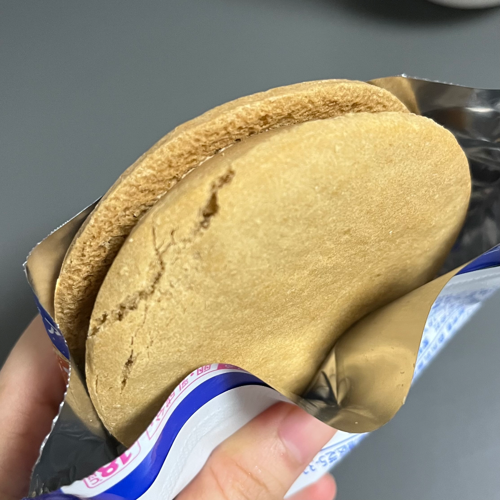 이렇게 안에 화이트 초콜릿이 박혀있는데 이게 진짜 딱딱해서 식감을 바꿔주는 한편, 잇몸이 위협당하기도 한다. 잘못 먹다가 잇몸 긁히니 조심해서 먹어야 함. 화이트 초콜릿도 나름 맛이라는 게 있을 텐데 밀크티 맛에 기가 죽은 건지 별다른 맛이 안 느껴졌다. 그냥 식감용인 듯. 이것도 한 4번 정도 또 사 먹었다.